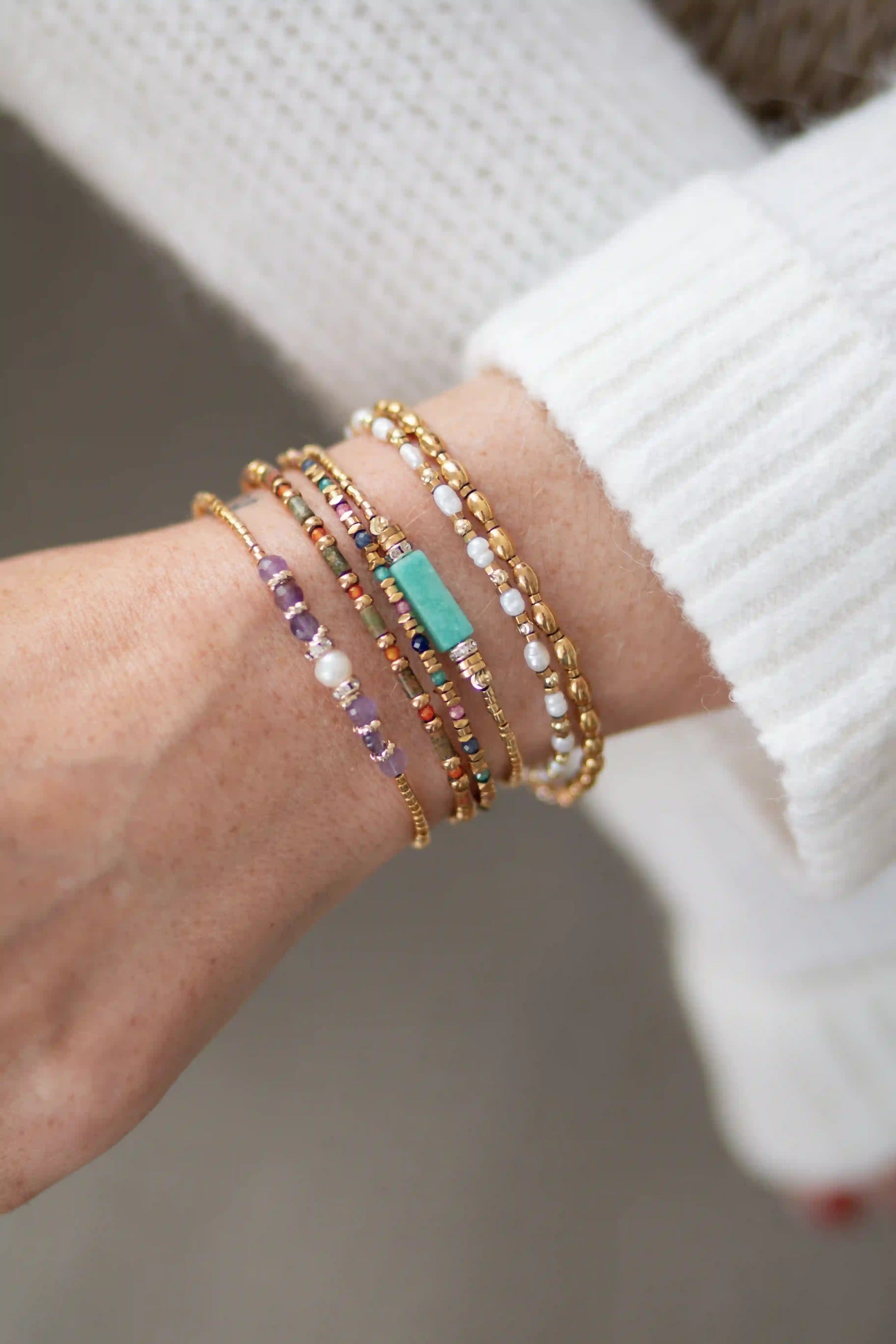Les pierres et les perles que nous utilisons sont naturelles. Elles peuvent ainsi présenter de légères variations de couleurs d'un bijou à un autre, ce qui rend chaque création unique.
